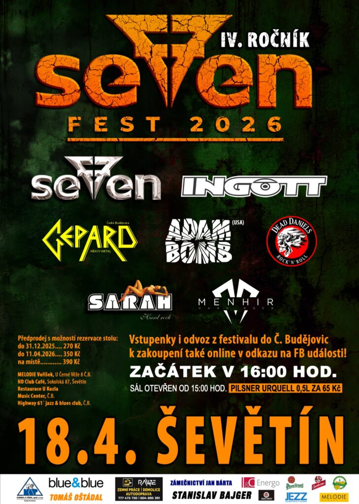 Velikonoční neděle 5.4. bude ozdobena koncertem s Milošem Dodo Doležalem v klubu Béčko v Třebíči, kam si společně odchkočíme ze studia. V sobotu 18.4. pak vyrazíme do jihočeského Ševětína na Seven Fest 2026, pořádaný kapelou Seven (České Budějovice)! Vstupenky na obě akce jsou v prodeji, další podrobnosti najdete v událostech na fb: 5.4. Třebíč / 18.4. Ševětín.